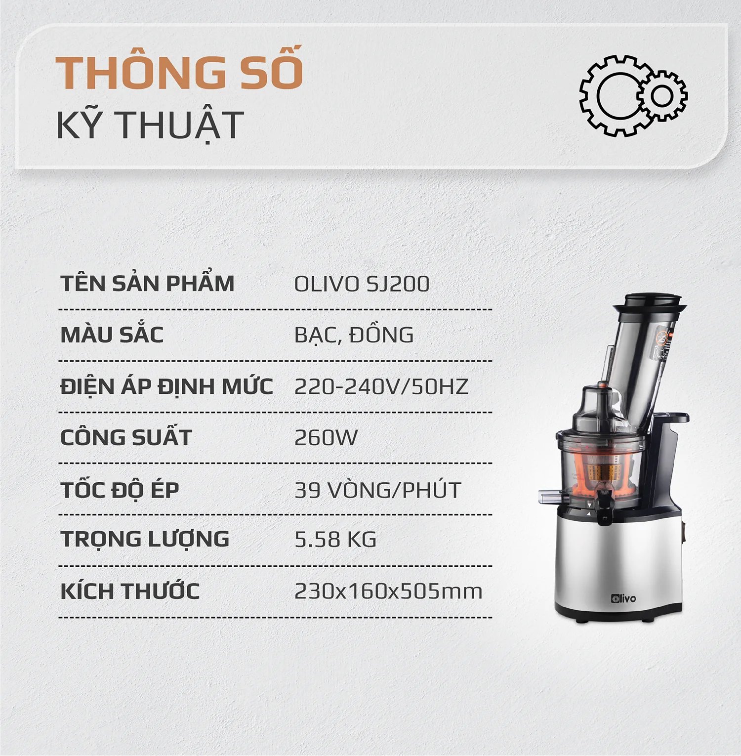 Máy Ép Chậm OLIVO SJ200 Đa Năng là lựa chọn lý tưởng cho những gia đình yêu thích nước ép nguyên chất, giàu dưỡng chất và an toàn cho sức khỏe.