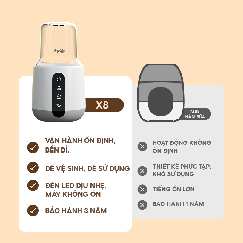Máy hâm sữa và tiệt trùng điện tử TopGiaKids X8, máy mini nhỏ gọn dễ sử dụng và tiện lợi.
