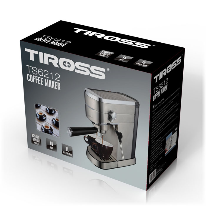- Máy pha cà phê TIROSS TS6212 được thiết kế hoàn toàn mới, hiện đại, nhỏ gọn và dễ dàng sử dụng.