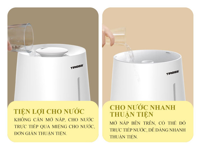 - Cho nước từ trên xuống cực kì thuận tiện: chỉ cần mở nắp là thêm được nước; bình nước có vạch đo nước; tiện lợi theo dõi.