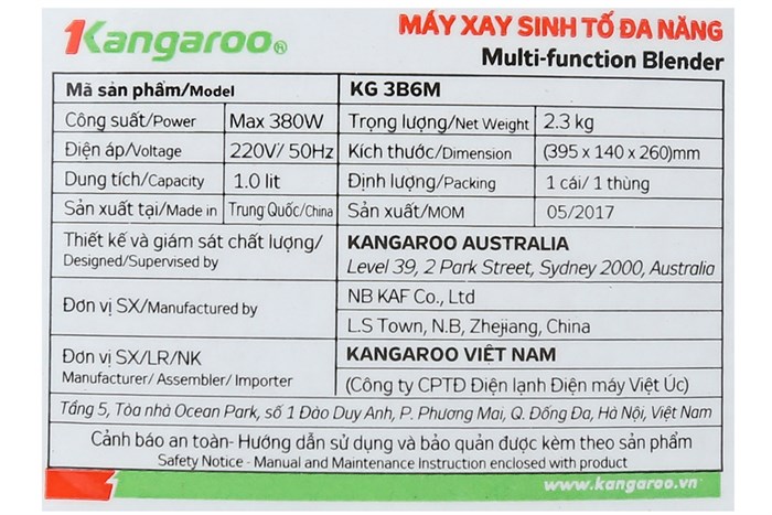 Kangaroo KG3B6M hoạt động mạnh mẽ, công suất 380W cho mức hoạt động hiệu quả, xay các loại thực phẩm khác nhau. Dù công suất lớn nhưng đồ ồn thấp, hoạt động rất êm ái.