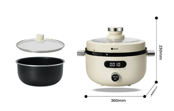• 6 chế độ nấu ăn được cài đặt sẵn bao gồm hotpot, soup, cake, rice cook, steam, stew giúp bạn nấu các món ăn chuẩn xác chỉ với một nút bấm.