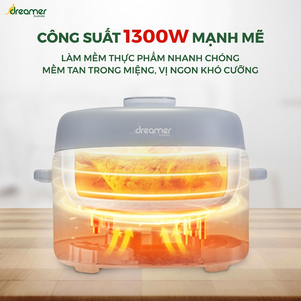 5. HẸN GIỜ VÀ GIỮ ẤM LÊN ĐẾN 24H Với tính năng hẹn giờ nấu linh hoạt 24 giờ, bạn có thể chuẩn bị sẵn nguyên liệu từ trước và chỉ cần bật chế độ hẹn giờ, nồi áp suất Dreamer sẽ tự động bắt đầu chu trình nấu để bữa ăn hoàn thành đúng lúc, vừa vặn với thời gian mong muốn.