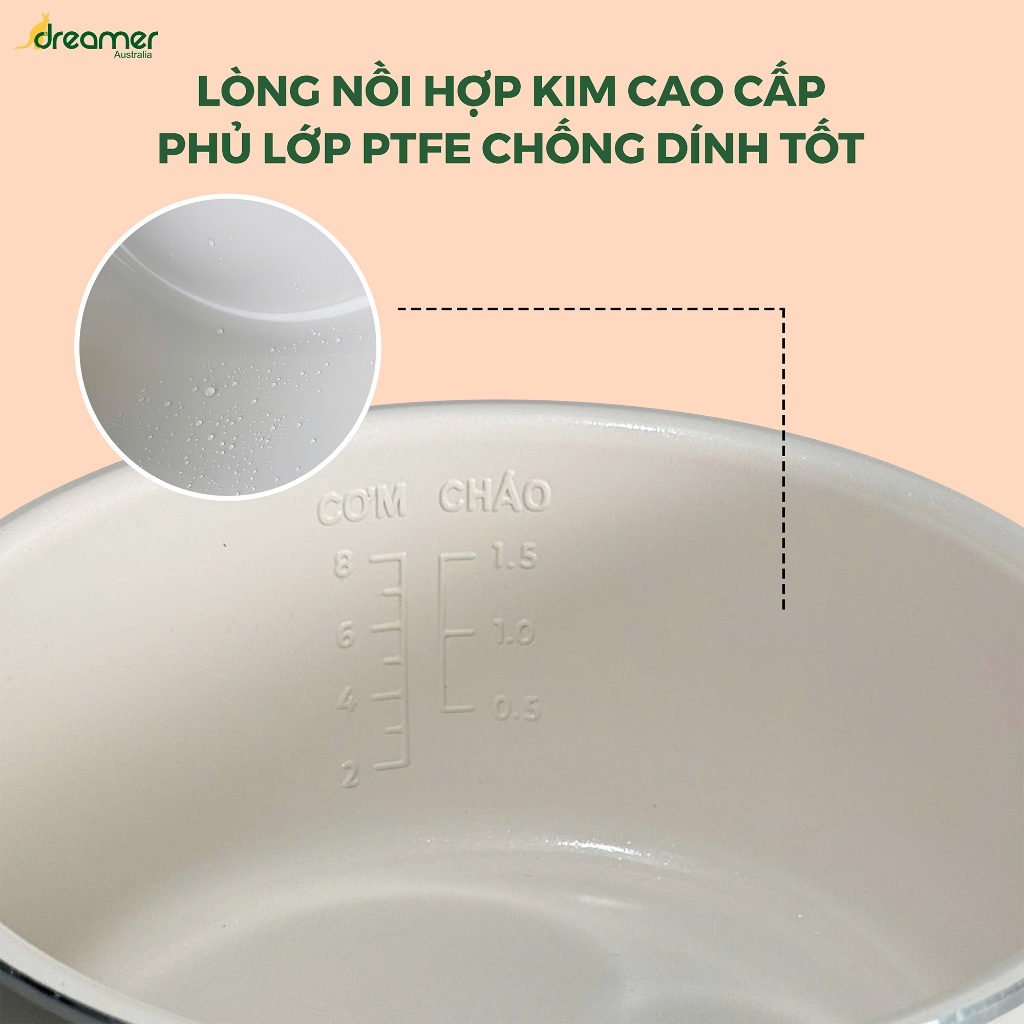 4. LÒNG NỒI HỢP KIM CAO CẤP, AN TOÀN BỀN BỈ Nồi áp suất Dreamer DKA-EPC14 được trang bị lòng nồi hợp kim cao cấp, đảm bảo độ bền vượt trội, an toàn cho sức khỏe. Lớp chống dính PTFE bên trong giúp bạn dễ dàng nấu nướng mà không lo thực phẩm bị dính hay cháy, giữ cho món ăn luôn thơm ngon và lành mạnh.