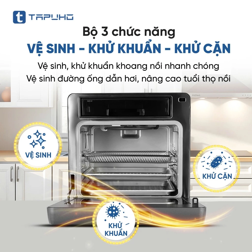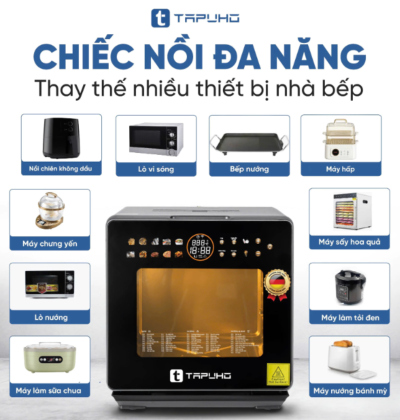 - Nồi chiên hơi nước TAPUHO TSF16 là một sản phẩm gia dụng cao cấp kết hợp công nghệ chiên không dầu và hơi nước, mang đến trải nghiệm nấu ăn tiện lợi, an toàn và tốt cho sức khỏe