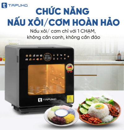 - Nồi chiên hơi nước TAPUHO TSF16 tích hợp chức năng nấu xôi/cơm 1 chạm, giúp hạt xôi và cơm chín đều, dẻo mềm nhờ công nghệ hấp hơi nước hiện đại. Chỉ cần chọn chế độ, nồi tự động điều chỉnh nhiệt độ và thời gian, mang lại món ăn ngon trọn vị mà không cần canh chỉnh.