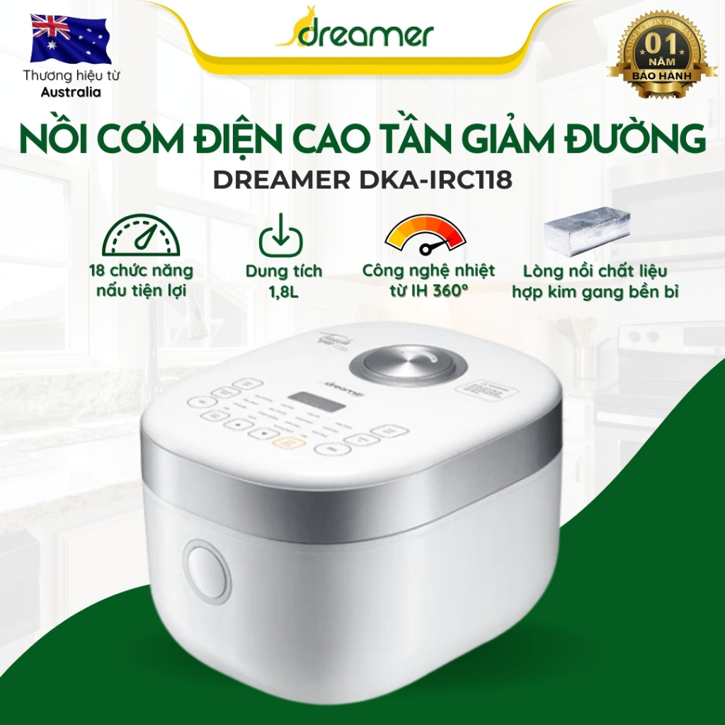 8. CHẾ ĐỘ HẸN GIỜ VÀ GIỮ ẤM ĐẾN 24H VÔ CÙNG TIỆN LỢI Nồi cơm điện cao tần Dreamer 1.8L có chế độ hẹn giờ nấu thông minh và giữ ấm đến 24h, giúp bạn luôn có bữa cơm nóng hổi sẵn sàng sau một ngày bận rộn.