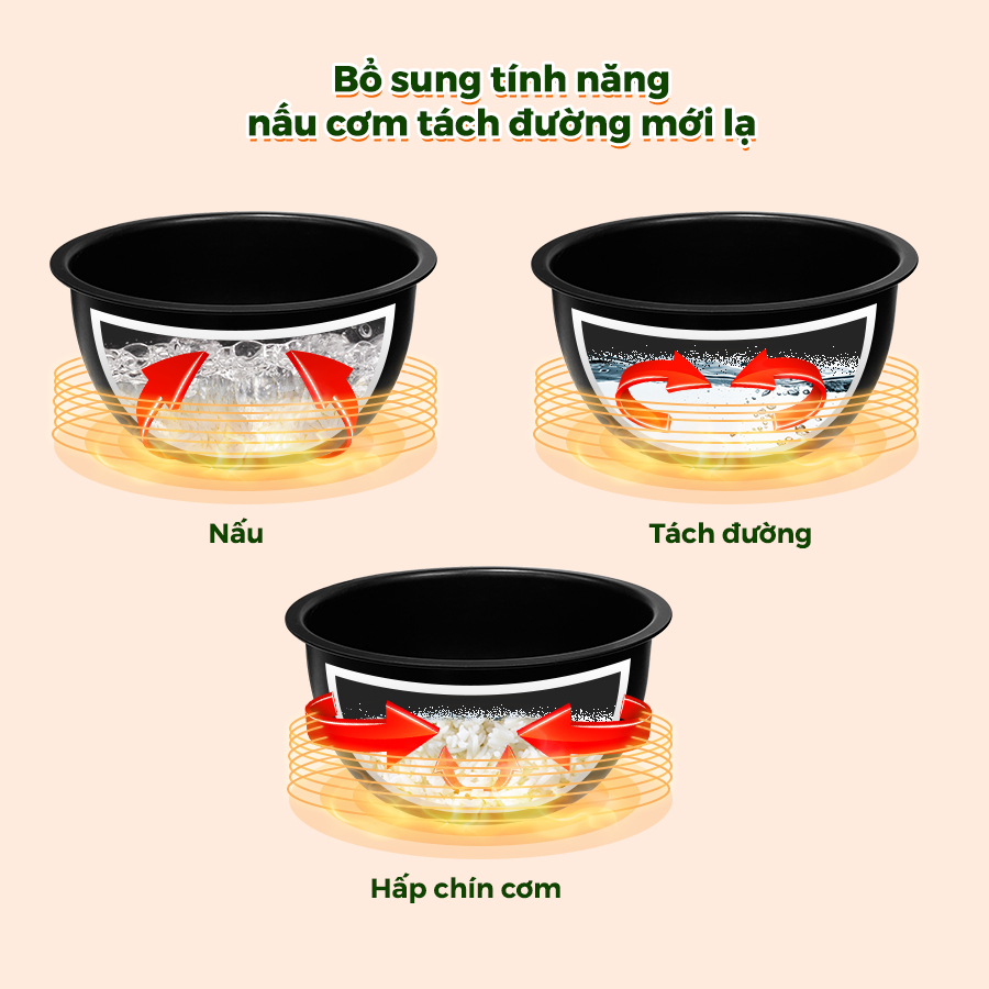 1. BỔ SUNG CHỨC NĂNG NẤU CƠM TÁCH ĐƯỜNG ĐỘC ĐÁO Khám phá chức năng nấu thông minh của nồi cơm điện cao cấp 1,8L Dreamer, tách đường chỉ với 1 thao tác. Giúp giảm lượng đường hấp thụ vào cơ thể – Một bước tiến vượt bậc cho sức khỏe và phong cách sống.