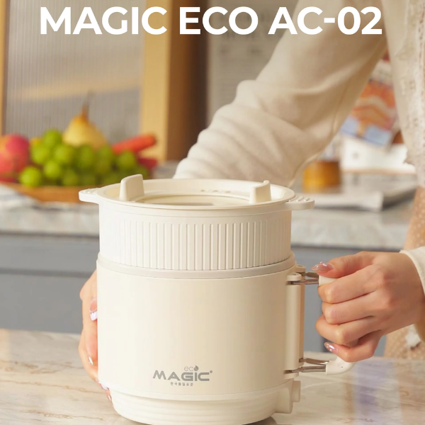 Thiết kế tổng thể của Magic AC-02 nhỏ gọn, sang trọng và dễ dàng mang theo, phù hợp sử dụng tại văn phòng, phòng trọ hoặc mang đi du lịch. Chân đế chống trượt và hệ thống nhiệt tỏa đều giúp nồi hoạt động ổn định và an toàn.