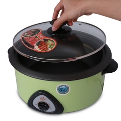 - Nồi lẩu điện này có thiết kế thân nồi bằng thép sơn tĩnh điện giúp sản phẩm bền đẹp theo thời gian; Lòng nồi được làm bằng hợp kim nhôm tráng lớp men chống dính cao cấp giúp cho bạn tiết kiệm được rất nhiều thời gian và vệ sinh dễ dàng sau khi sử dụng xong, không lo bị cháy khét trong khi nấu.