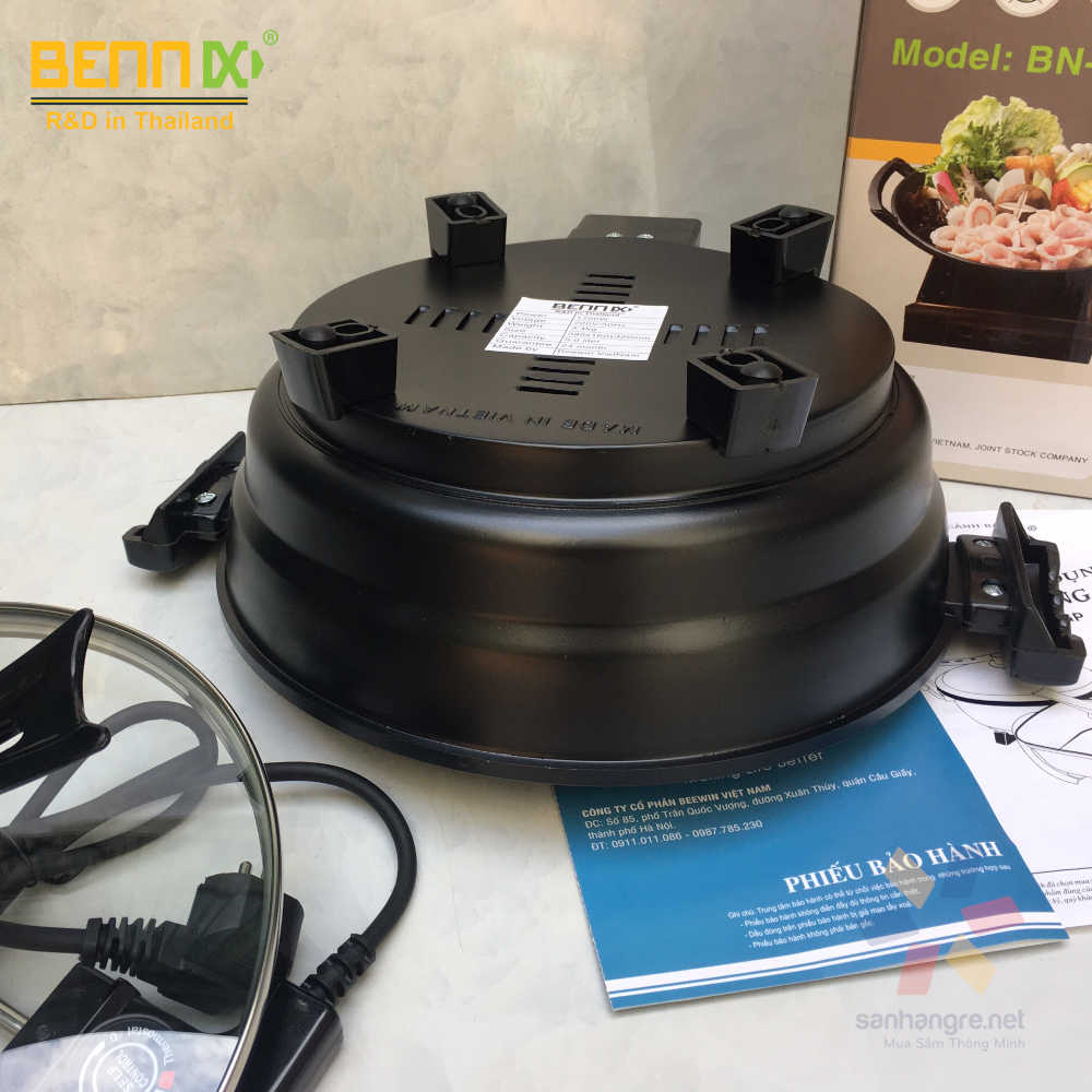 - Nồi lẩu điện Bennix BN-05EGP sở hữu kiểu dáng đẹp, màu sắc sang trọng với tay cầm được thiết kế vững chắc, nhẹ và cách nhiệt, cách điện giúp đem lại sự an toàn tuyệt đối cho các bà nội trợ.