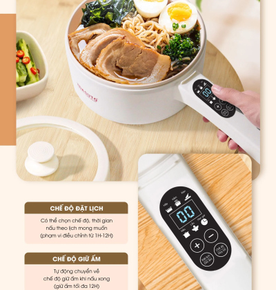 - 6in1 chế độ: Đun sôi, xào, hấp, giữ ấm, ăn lẩu, nấu canh. Tiện lợi, nấu nướng nhanh chóng, không tốn diện tích, không tốn thời gian, tiết kiệm tối đa cho bạn và gia đình