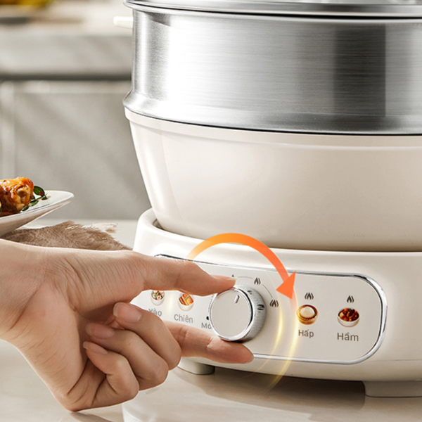 Nồi có công suất 1300W và nhiệt độ điều chỉnh linh hoạt từ 60°C đến 220°C, phù hợp cho nhiều món ăn khác nhau. Bạn có thể nấu lẩu, hấp rau củ, hải sản hay hầm các món bổ dưỡng.