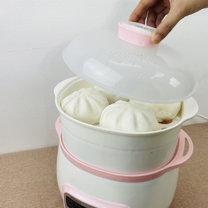 + Có khay hấp đi kèm, 1 lần nấu được 2 món khác nhau, tiện lợi và tiết kiệm thời gian.