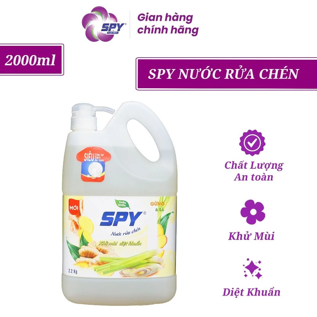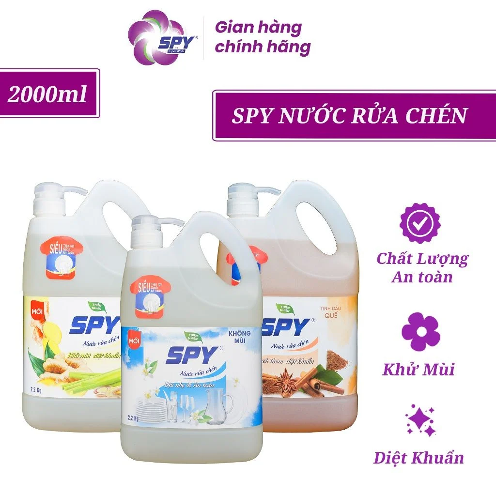 NƯỚC RỬA CHÉN SPY THIÊN NHIÊN 2000ML – SẠCH BONG KÍT KÍT, DỊU NHẸ TỰA TAY MẸ