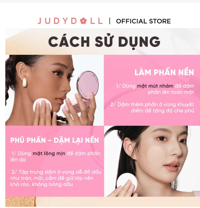 Phan nen JUDYDOLL con ho tro cac phong cach trang diem da dang tu minimalism den glam. Lop matte tu nhien dac biet phu hop cho mua le hoi tao hieu ung da dep ma khong qua loe loet. Nguoi dung co the ket hop voi kem nen de tao ve ngoai ca tinh phu hop voi moi lua tuoi va dip su dung.
