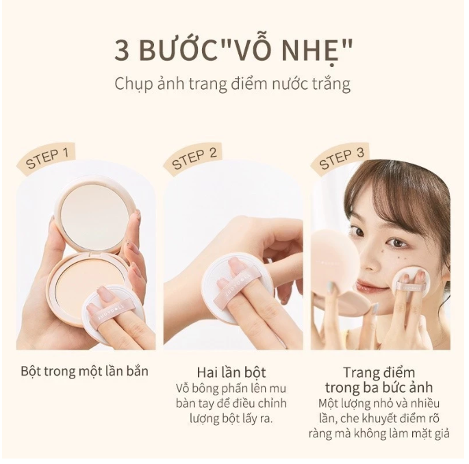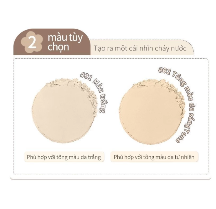 Chất phấn mịn, dễ tán, giúp lớp trang điểm đều màu và mềm mượt Kiềm dầu hiệu quả, giúp da khô thoáng suốt cả ngày Che khuyết điểm nhẹ, mang đến làn da hoàn hảo, tươi sáng