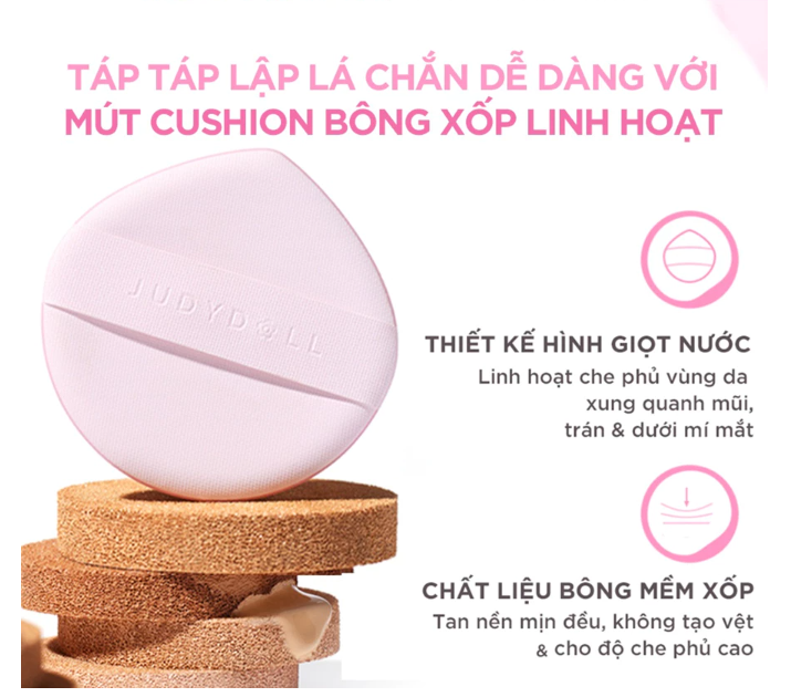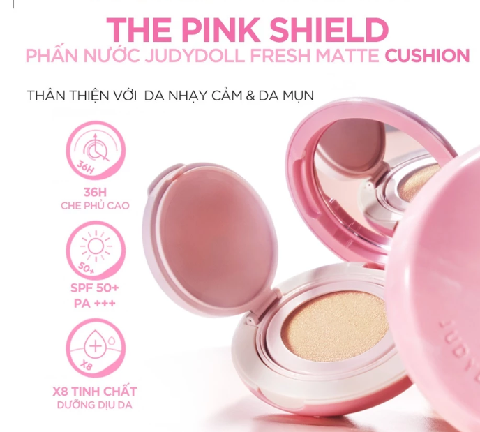 Phấn Nước Judydoll Fresh Matte Cushion Fair là dòng cushion mang lại lớp nền hoàn hảo, kết hợp giữa khả năng che phủ tốt và hiệu ứng lì tự nhiên. Sản phẩm được yêu thích nhờ kết cấu mỏng nhẹ, dễ tán đều, giúp lớp nền tiệp vào da mà vẫn giữ được cảm giác thoáng mịn, không bí da.