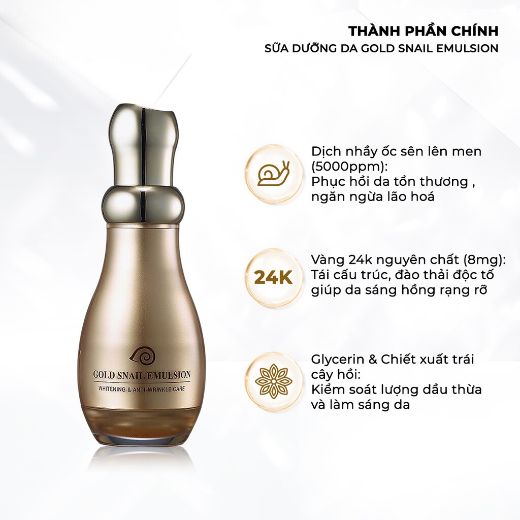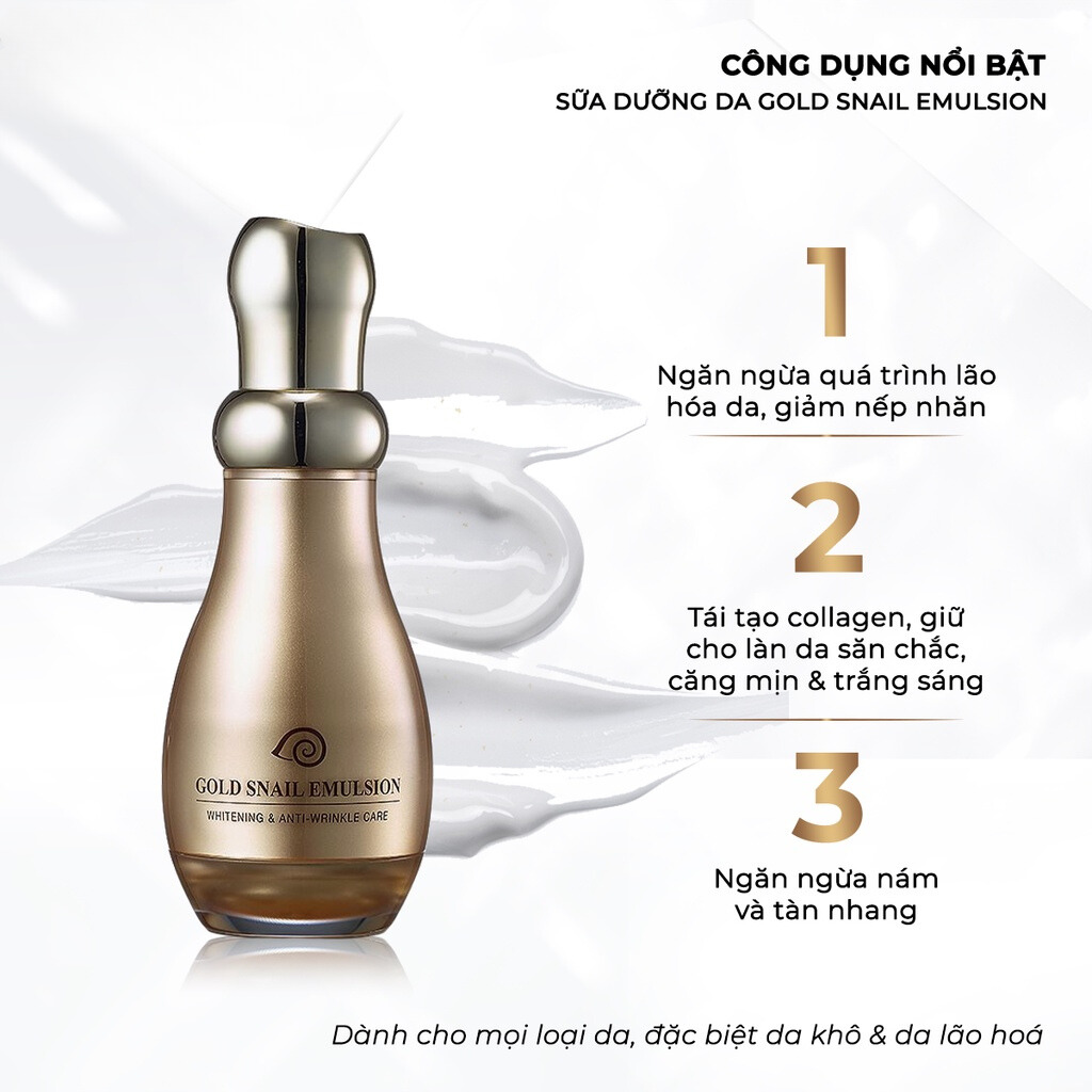 Sữa Dưỡng Da Ốc Sên Làm Sáng Da, Ngăn Ngừa Lão Hóa, Tái Tạo Làn Da, Giảm Nám Tàn Nhang Gold Snail Emulsion 130ml