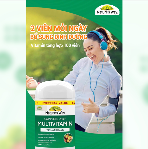 Vitamin tổng hợp Nature's Way Complete Daily Multivitamin, hộp 100 viên, bổ sung dinh dưỡng, tăng sức khỏe